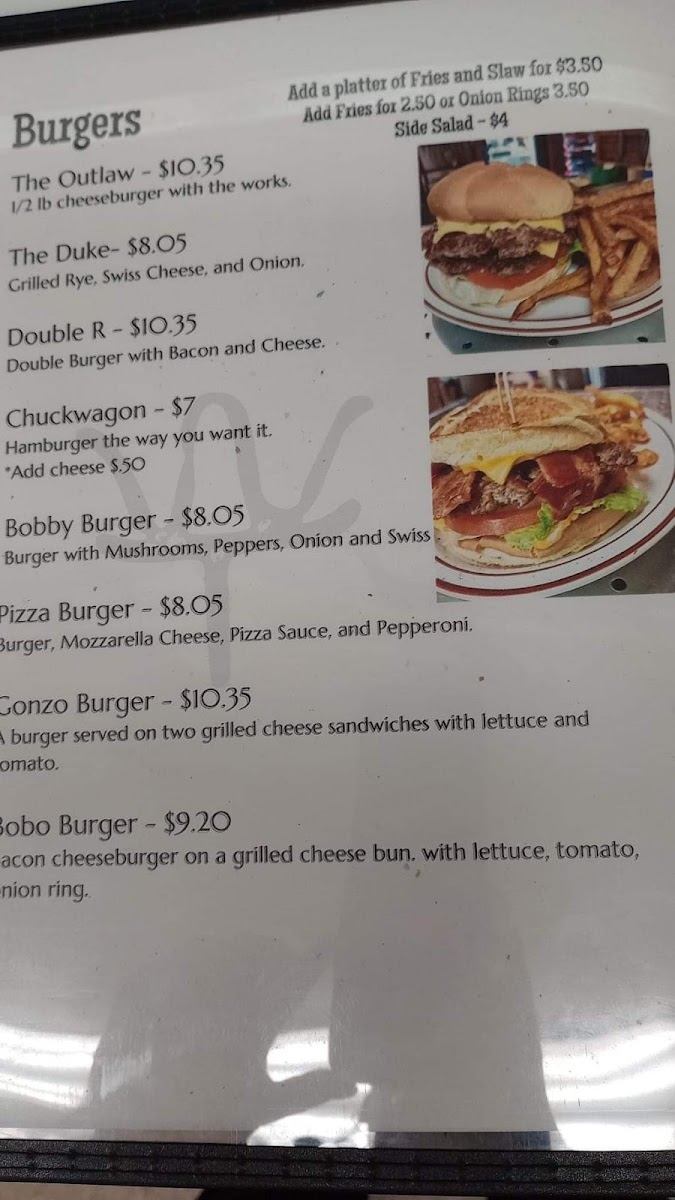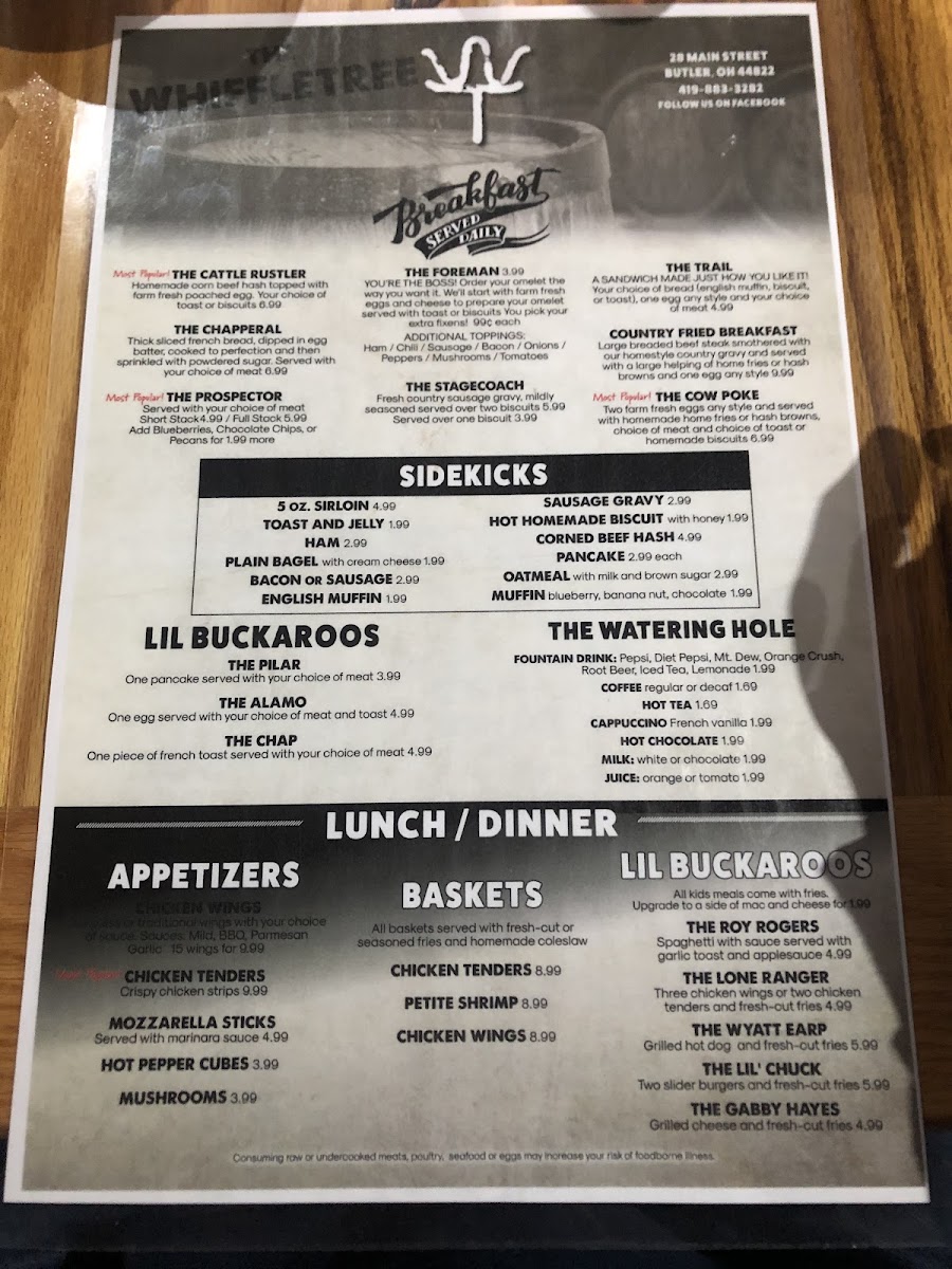 The Whiffletree Restaurant, nestled at 28 Main St, Butler, OH 44822! Our menu is a delightful journey through hearty comfort food and mouthwatering specialties that are sure to satisfy every palate. Start your meal off right with our signature Biscuits and Gravy or indulge in a stack of Thick Cut French Toast for a sweet twist. For those craving a savory feast, don’t miss our famous Lasagna or the crispy Deep Fried Chicken, perfectly paired with our Fresh Salad Bar Fixings. And as you explore further, treat yourself to decadent desserts like our Brownie Sundae. Whether it's a casual bite like the Slim Pickens Sandwich or a burger experience with The Double R Burger, the Whiffletree has something to tempt every taste. Join us for a memorable dining experience that will keep you coming back for more!